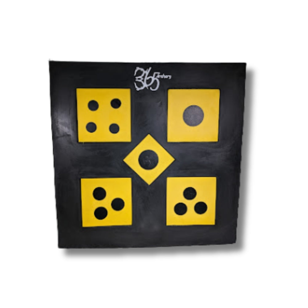 The 52" 5-Core XL target is one of the finest archery targets available to the industry. This large square target was designed for archery clubs and ranges that are looking for an all-foam target that will last several tournaments and yet offer easy arrow removal. This would be the ultimate archery target for an individual that does a high volume of shooting or a family that enjoys shooting arrows together. The target consists of 4-14" XL cores and 1-10" yellow core, which are replaceable and can be rotated to the 6 different shooting surfaces. 365 Archery's "self-healing" proprietary foam will withstand the abuse of several tournaments before the yellow cores will need to be replaced at a fraction of the cost of a new target.